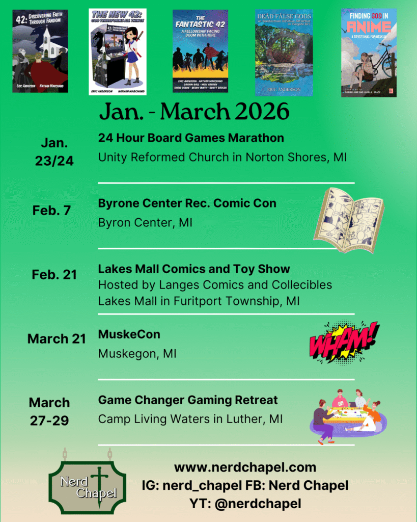So, what does this year look like? For me it looks like a full semi load but not all of it is Nerd Chapel. I’m attending the Nerd Culture Ministry Summit in April, getting married in July, and then there is the con schedule. My summer won’t be the same kind of full that it was in 2025.